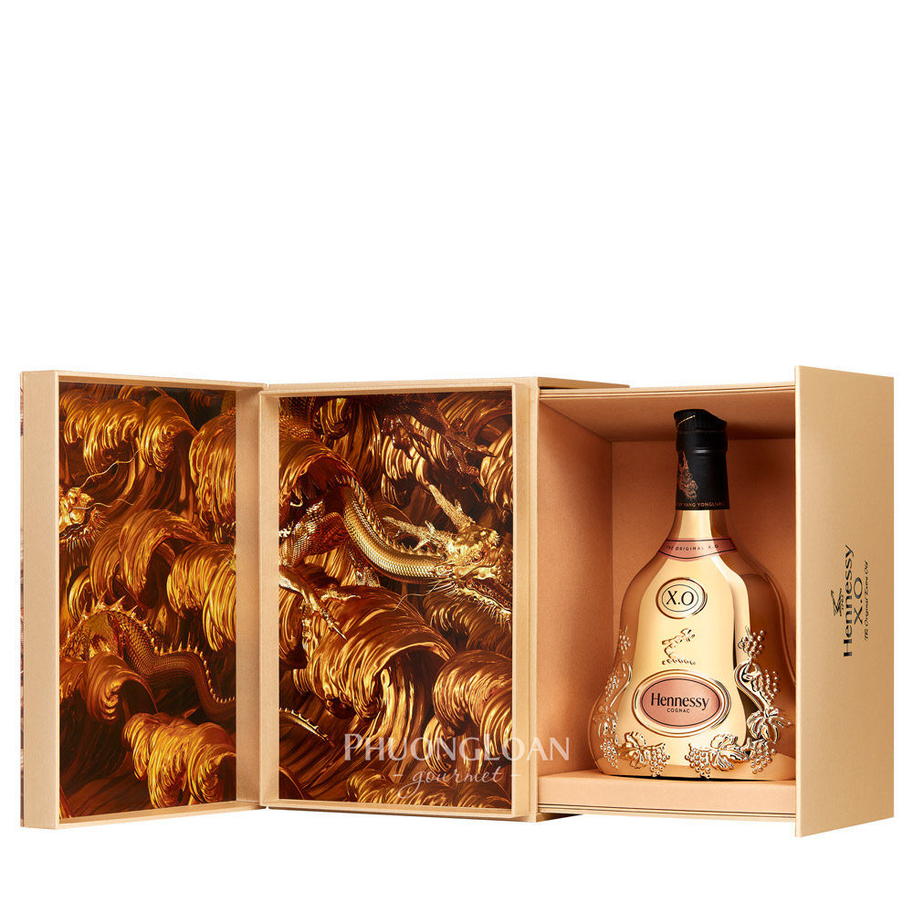 Rượu Cognac Hennessy XO Limited/Gold Dragon 2024 The Dragon Year Golden là sự hợp tác thiết kế giữa Hennessy và nghệ sĩ đương đại Trung Quốc Yang Yongliang. Phiên bản giới hạn theo mùa này có màu vàng hoa sang trọng dành cho mùa cuối năm và năm mới Giáp Thìn 2024.