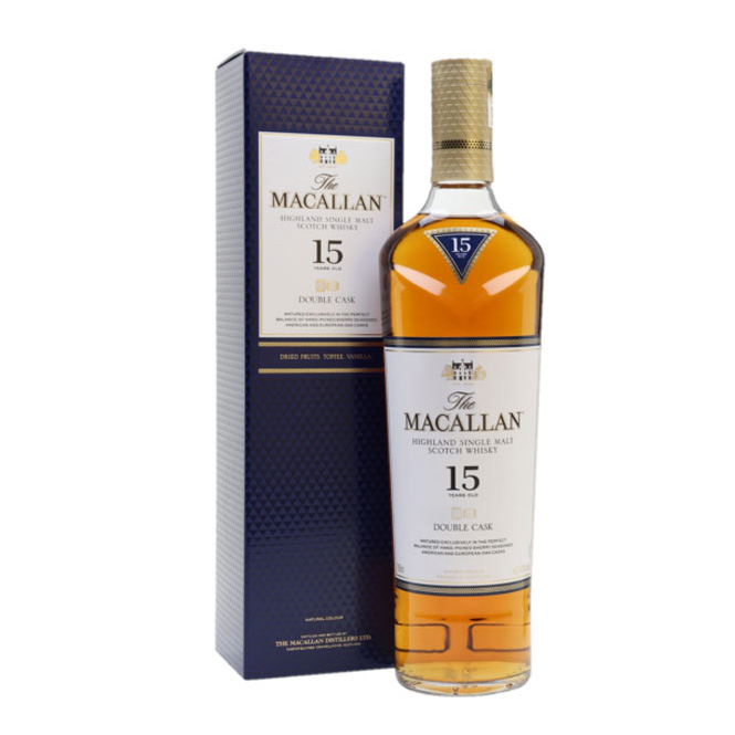 The Macallan Double Cask 15 Years Old là một loại rượu mạch nha đơn cất cân bằng độc đáo được tạo nên từ sự hòa hợp hoàn hảo của hai loại gỗ sồi. Gỗ sồi châu Mỹ được ủ với rượu sherry bổ sung thêm hương vani dịu dàng và gia vị tinh tế cho gỗ sồi châu Âu, từ đó tạo nên chất rượu whisky mang hương vị cùng đặc tính ngọt ngào và ấm áp hơn.